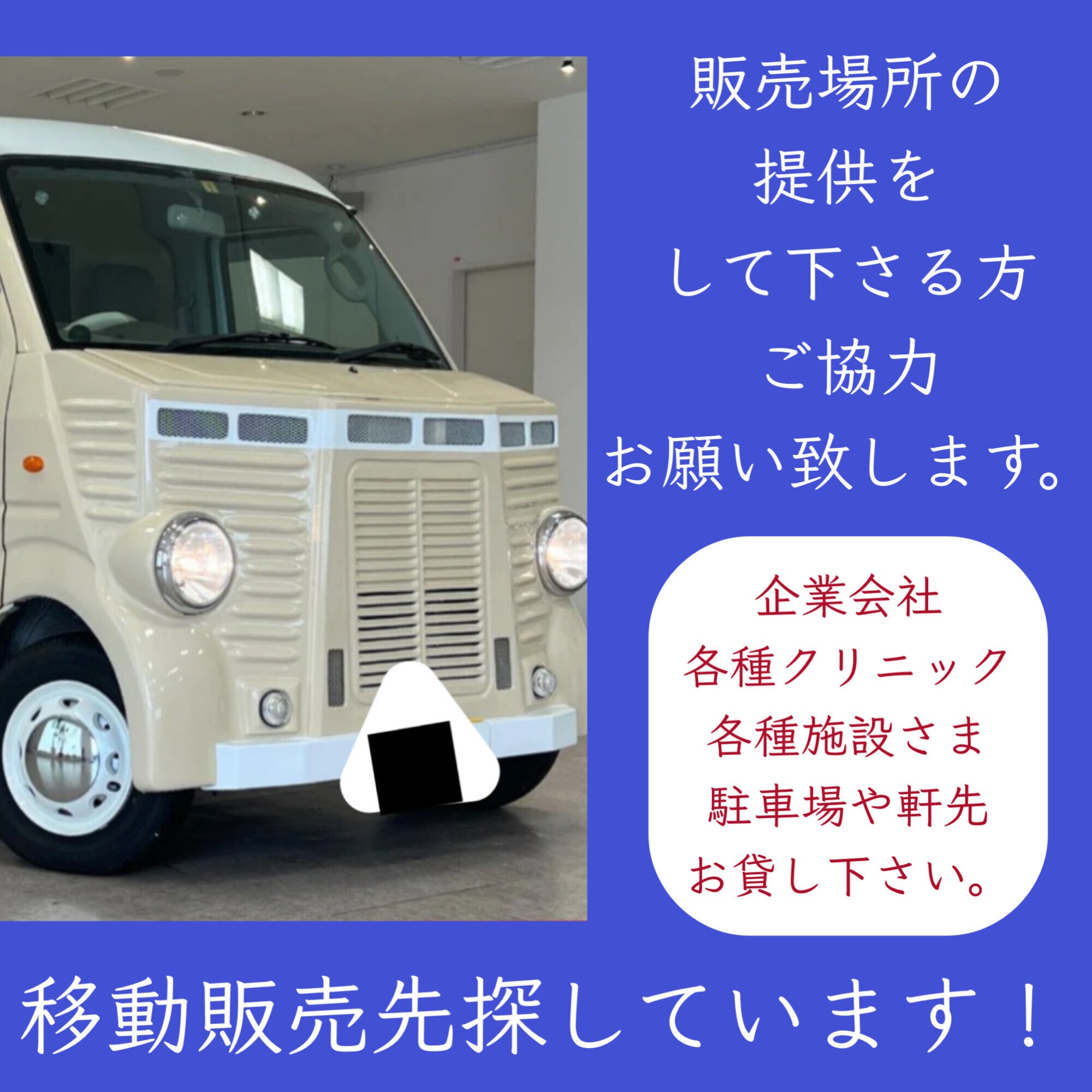 ※出張販売の場所を提供して下さる企業・病院・私有地などお持ちの方もご協力頂けると大変有難いです。