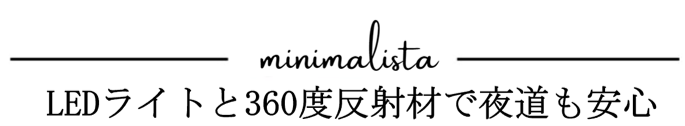 そんな時に『minimalista』は360°全方向から認識できる反射材を採用することで、視認性を高め、ドライバー