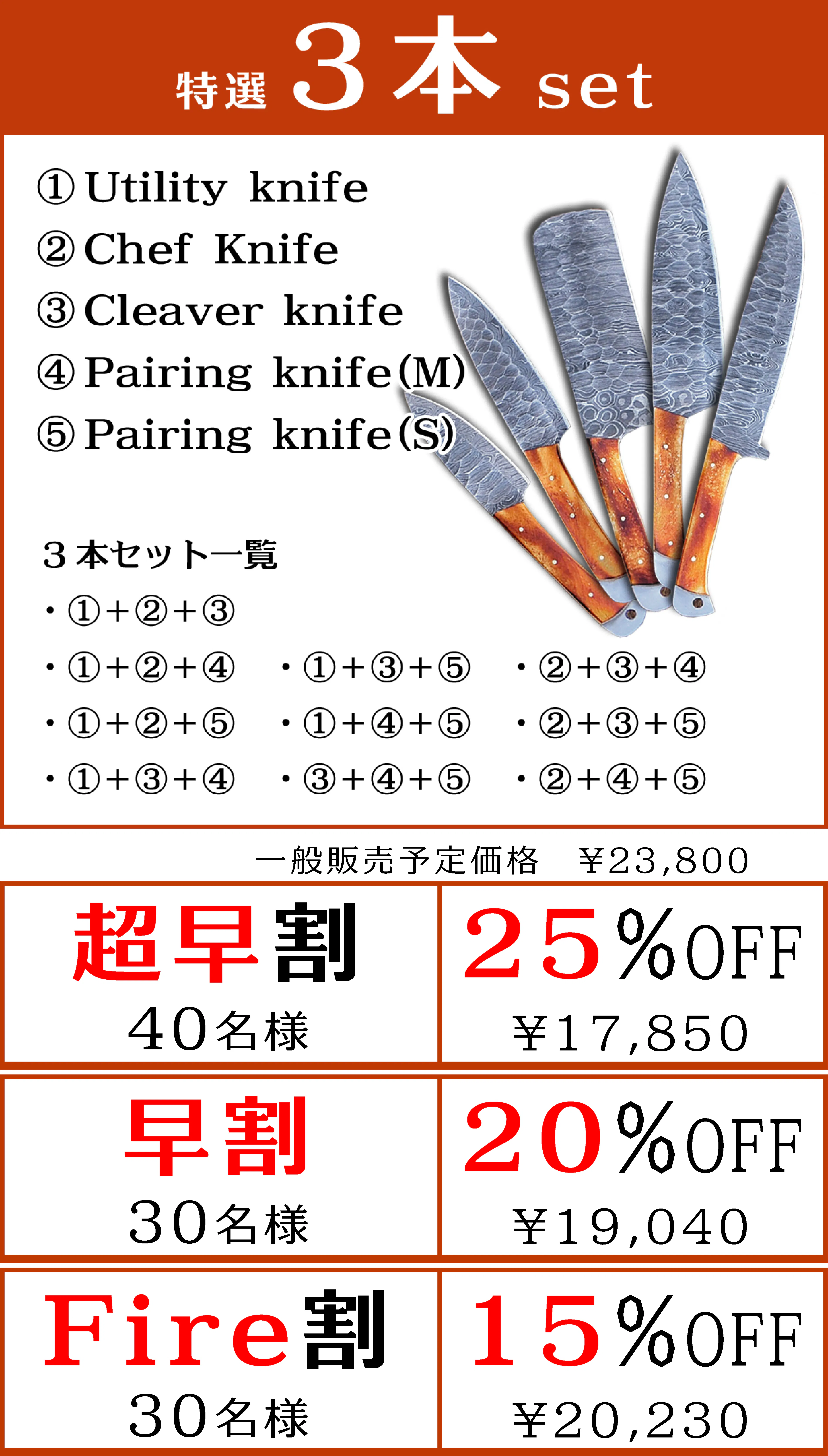 ◎ 包丁のみの3本セットもご用意しております。