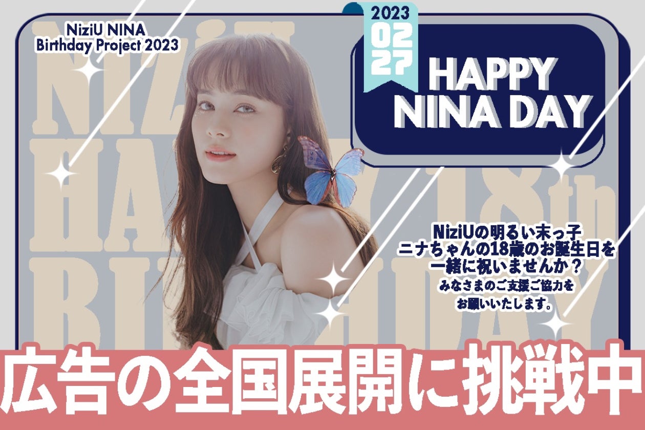 NiziUの明るい末っ子、ニナちゃんは2023年2月27日に18歳の誕生日を迎えます。全国のファンと一緒に盛大にニナちゃんの誕生日を応援広告という形でお祝いしたくクラウドファンディングを立ち上げました。