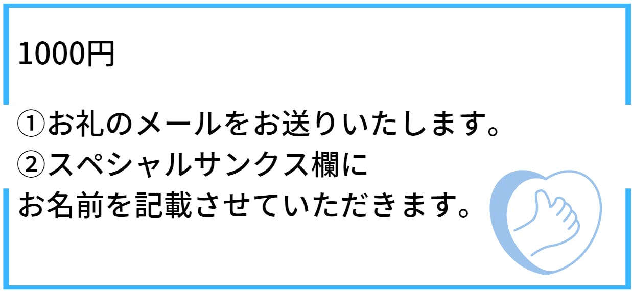 ②スペシャルサンクス欄にお名前を掲載させていただきます。