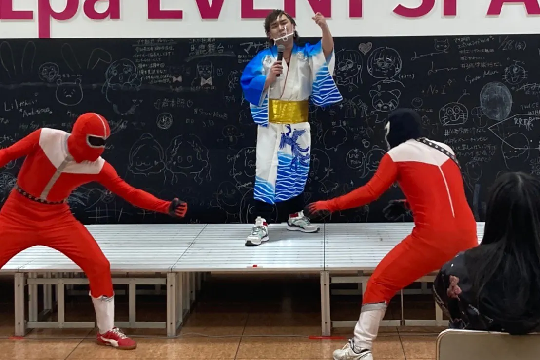 19歳で吉本興業に入社して、いわゆるよしもと芸人として11年活動し、スーツアクターとしては6年活動していました。スーツアクターとは、ヒーローショーなどで着ぐるみを着て演技する、いわゆる「中の人」です。音響の専門学校を卒業しているため、音源制作や音響設営ができます。