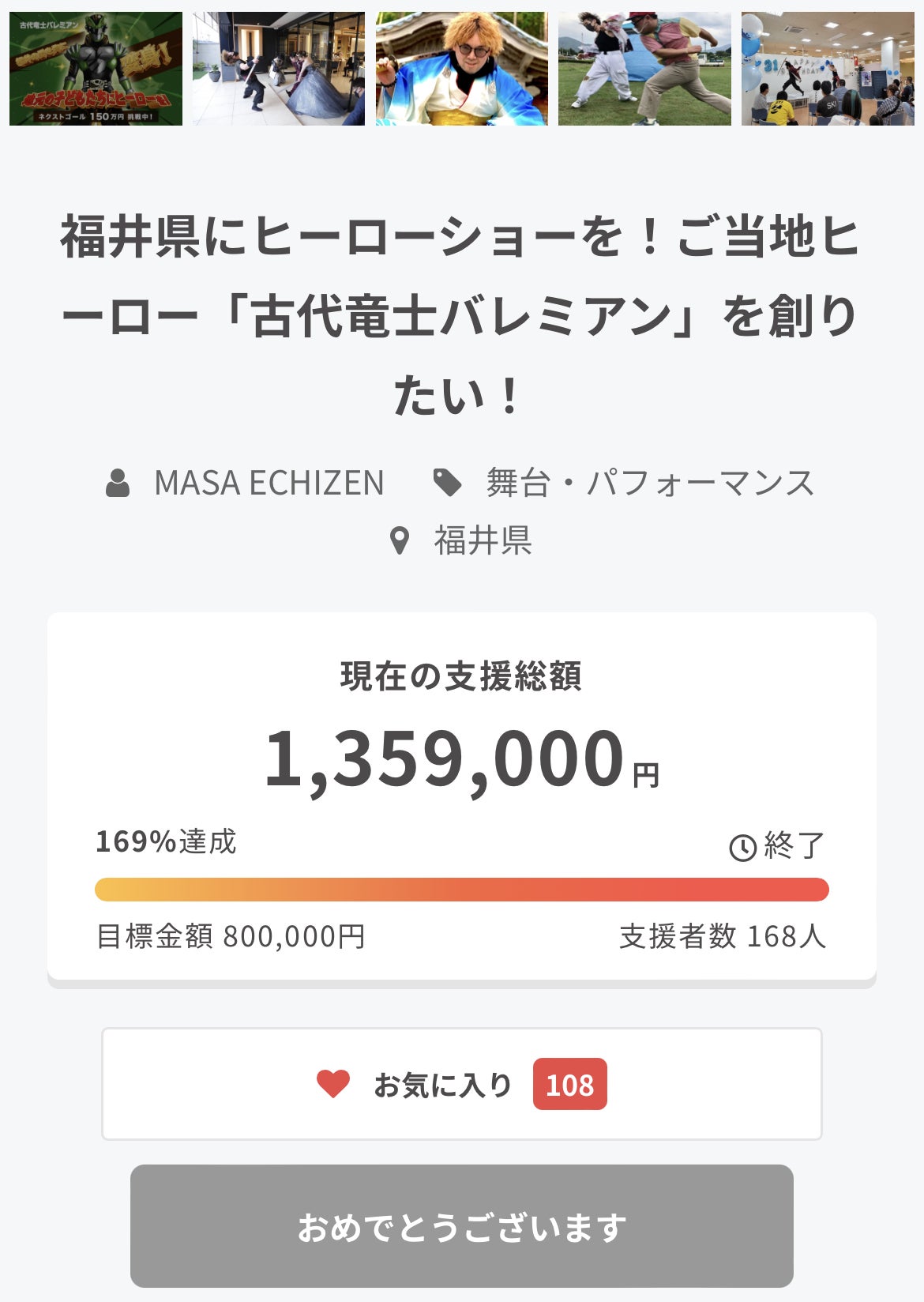 福井県にヒーローショーを!ご当地ヒーロー「古代竜士バレミアン」を創りたい!