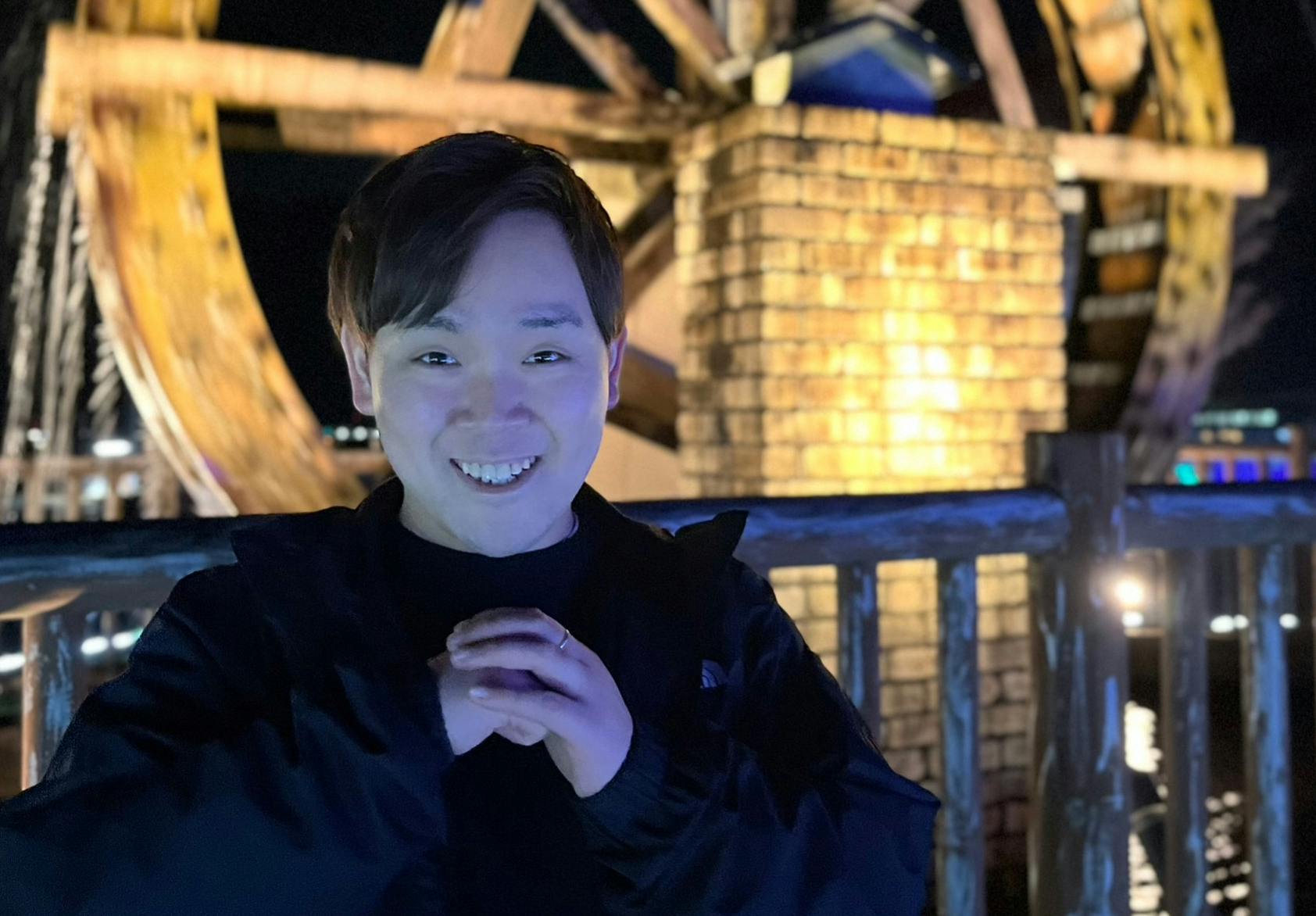 19歳で吉本興業に入社して、いわゆるよしもと芸人として11年活動し、スーツアクターとしては6年活動していました。スーツアクターとは、ヒーローショーなどで着ぐるみを着て演技する、いわゆる「中の人」です。音響の専門学校を卒業しているため、音源制作や音響設営ができます。