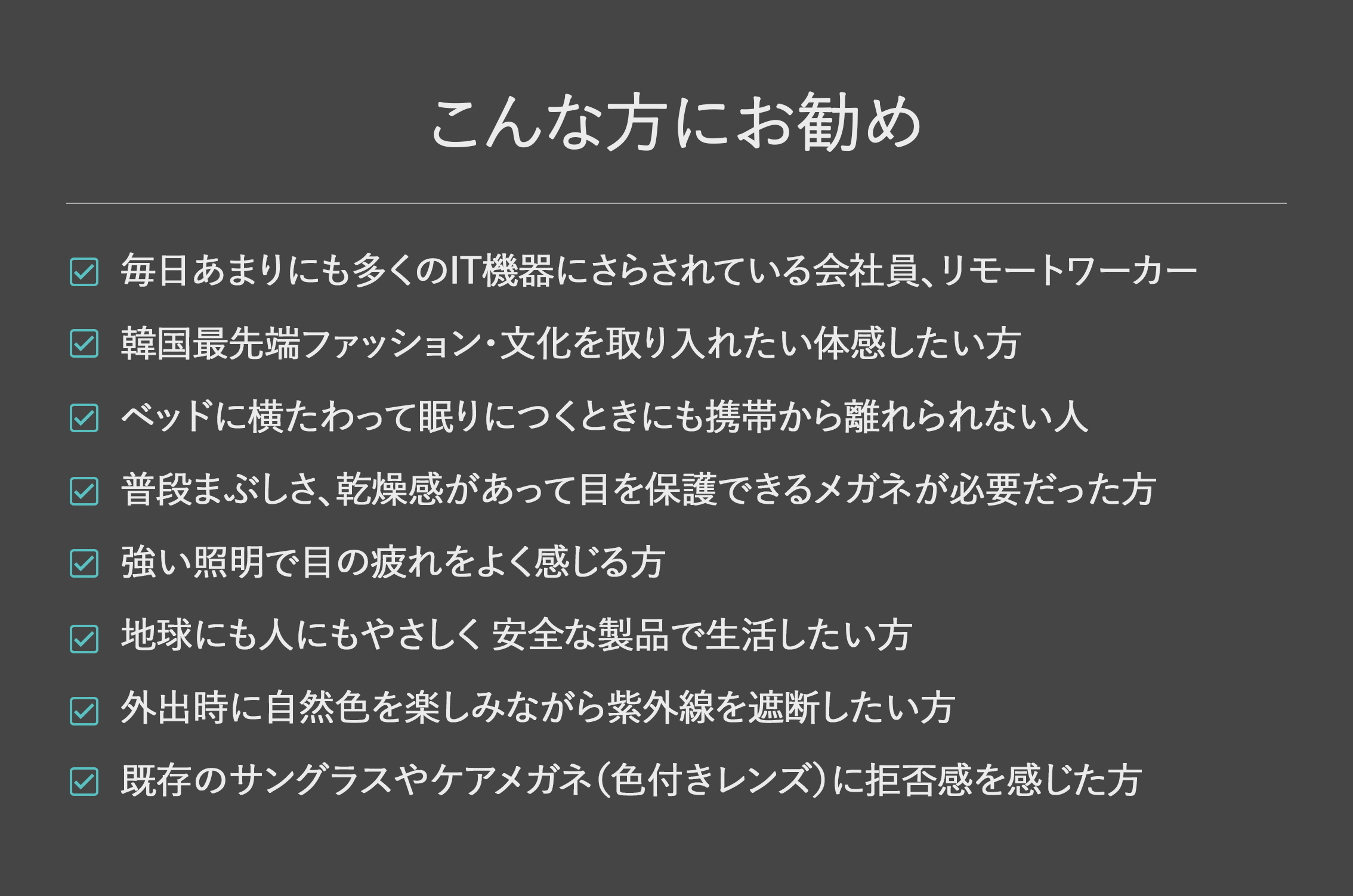 レンズにもブルーライトカット特有の黄色味が掛かっていませんので、外からの見た目も違和感なく、中からの視界も自然です。