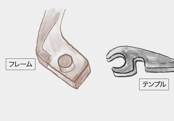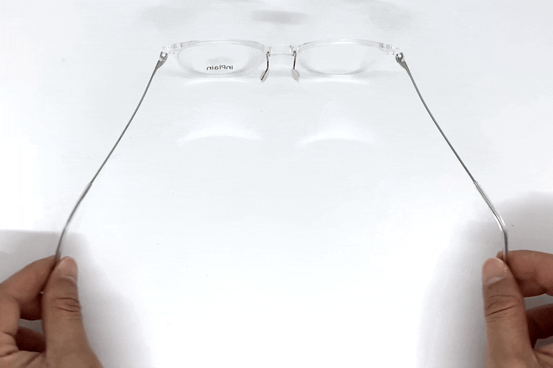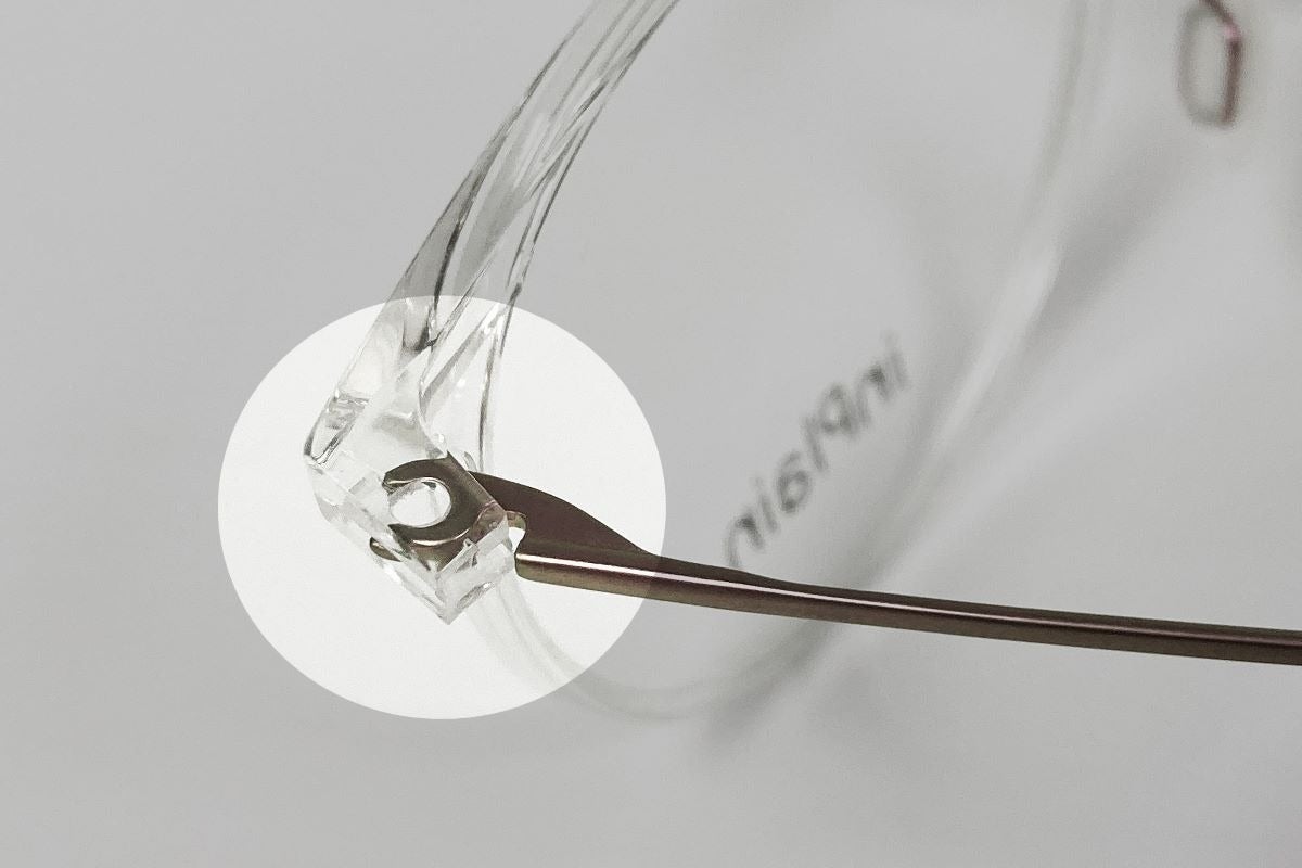 インプレーンはこのスパナー構造でネジなしで接続しスムーズに動きます。そのため、ネジが錆びたり緩んだりする⼼配がなく、外側の衝撃に柔軟性があるため、⻑く変形せずに、しっかりとメガネの品質を維持することができます。