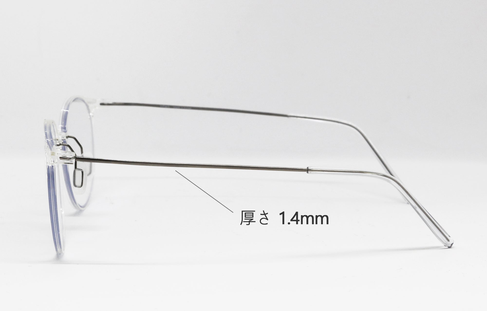 高い強度を持つベータチタン素材なので、1.4mmの厚さだけでもメガネレンズとフロント部分を⼗分に⽀え形状を維持することが可能です。
