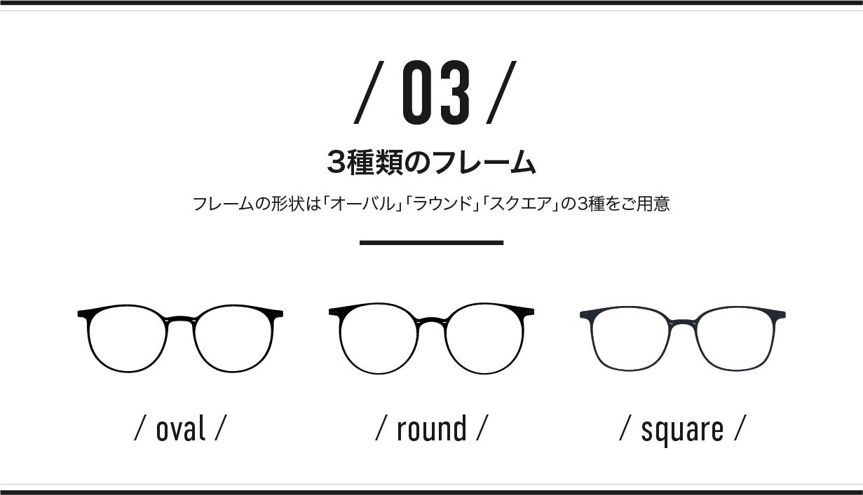 滑らかなラインの四角形のフレームでより広い視野を確保し、顔の大きさや形に関わらず知的で快適なイメージを演出します。