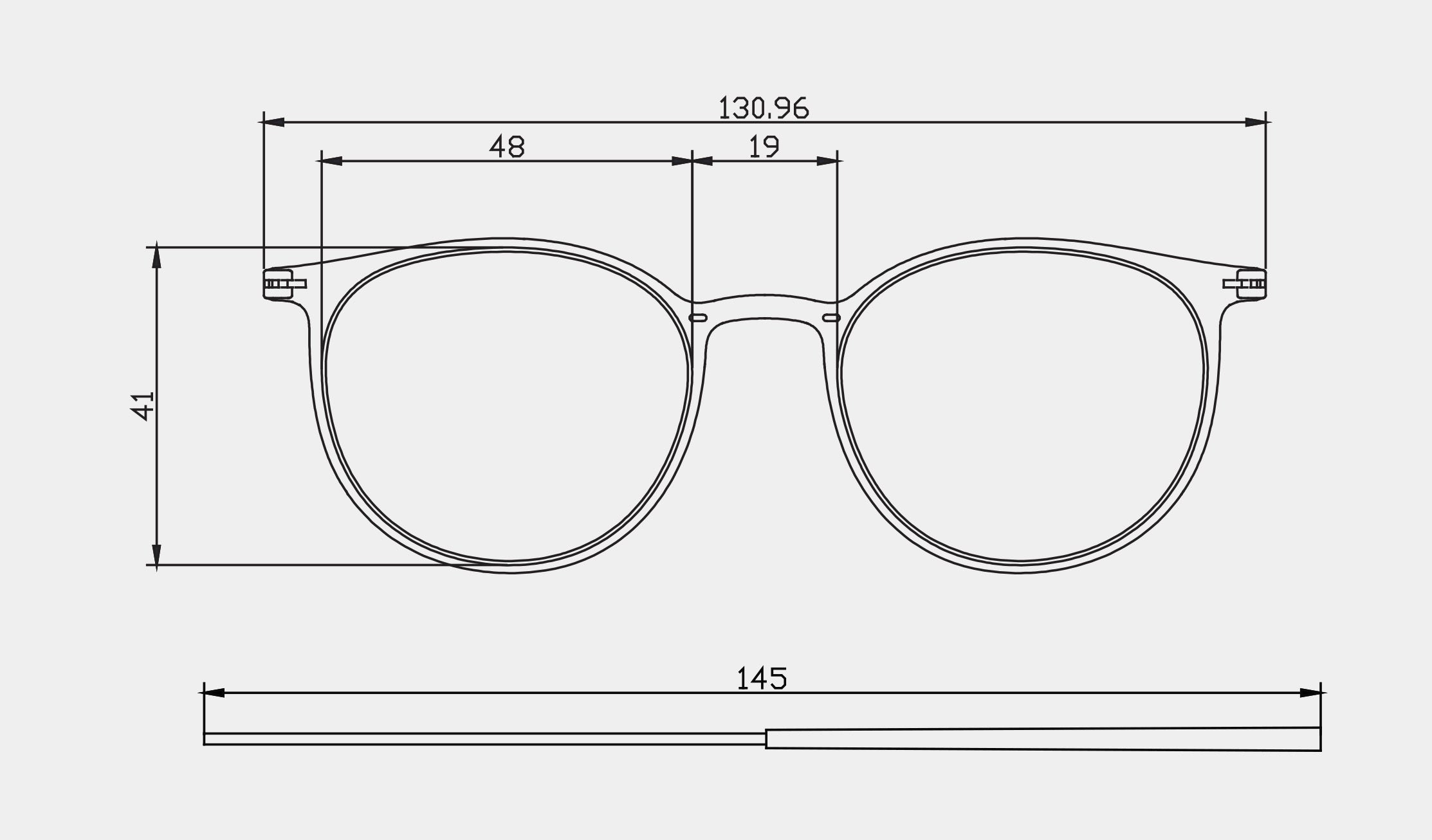 アイフレームの中で最もベーシックな楕円形のデザインで、ラウンドタイプやスクエアタイプに比べ、48のサイズはコンパクトです。控えめなデザインをお好みの男女におすすめです。