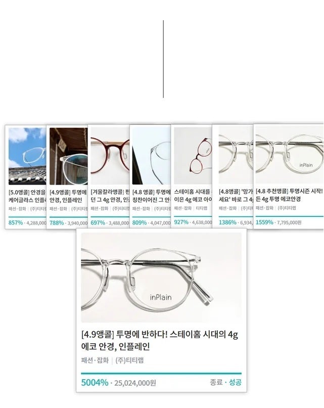 InPlainは韓国のクラウドファンディングで累計8回のアンコールを受け60,000,000ウォン超(約600万円)を売上、Clear lineモデルはそのうち390万円相当の支援を募っています。