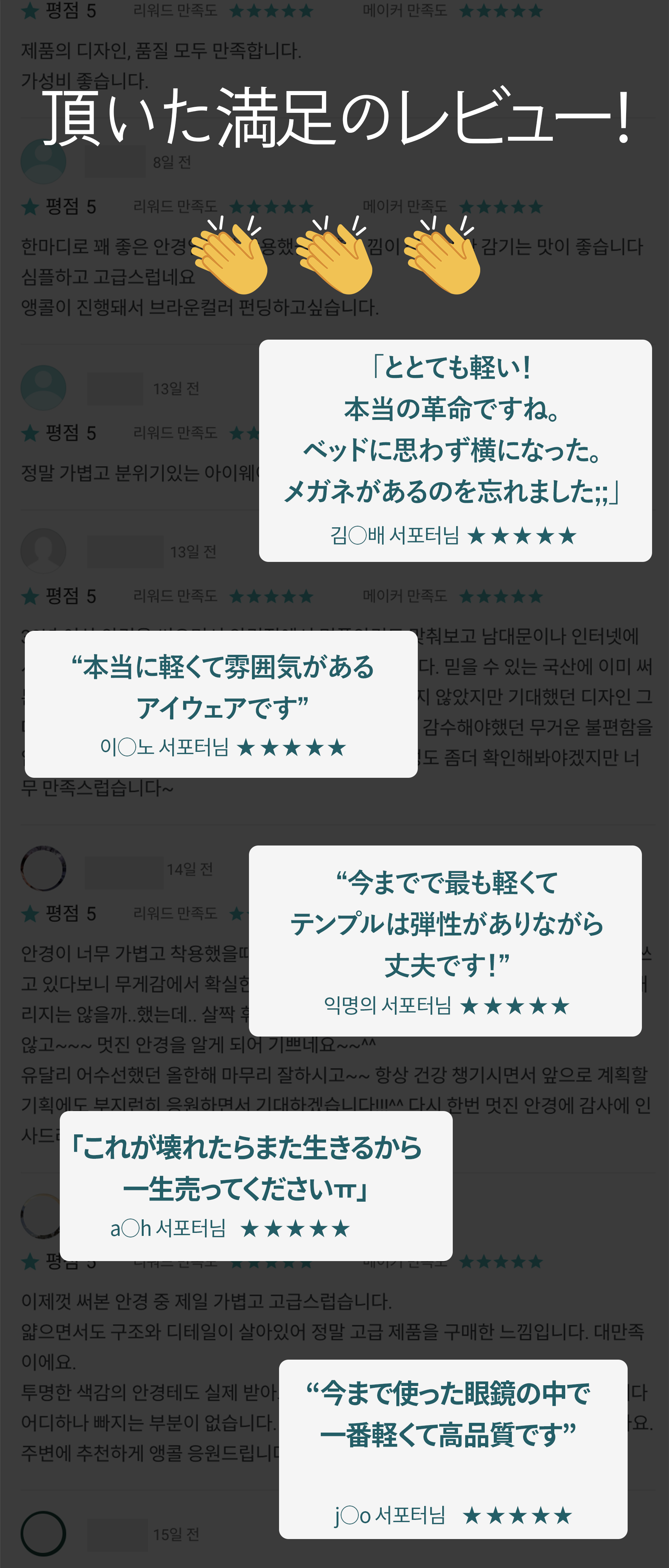 2023/04/30 09:40GW皆さんどうお過ごしでしょうか?かつての賑わいを取り戻す象徴となる一週間となりそうですね(^^)bコロナ禍に韓国で生まれたインプレーンは、時代にマッチした製品として大ヒットを記録しました。バイオマスを使って透き通るようなフレームを実現しております。環境に人にも優しい素材です。来月早々には出荷できる見込みなので、最後のキャンペーンをお見逃しなく!限定のBlack/Goldもまだ在庫がございます!では! もっと見る