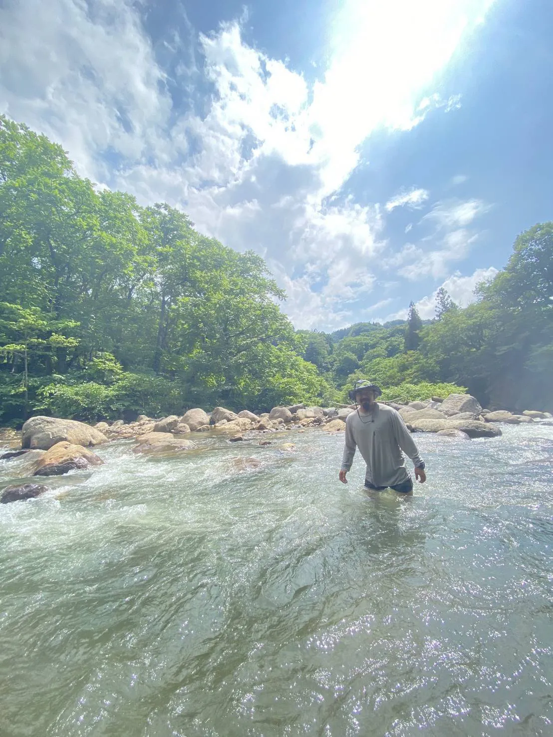 サウナで熱くなった体を川の水でキュッと締めると最高です!