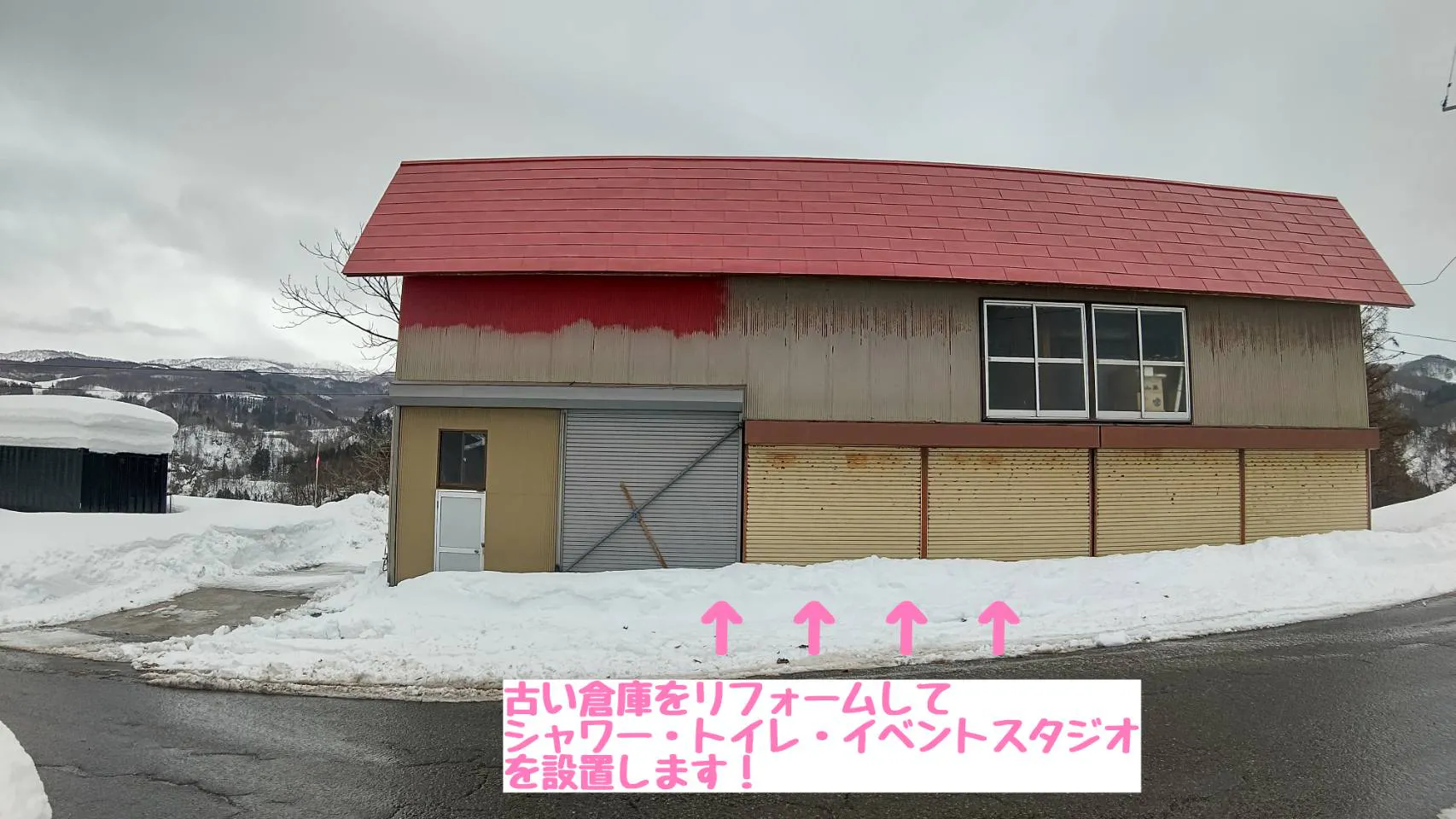 2023/02/21 10:16サニタリー施設予定横の空き地は、以前まで畑として使っていました!そこからは月山や田麦俣を一望できることから安らぎの場所作りをスタート!地盤をかためてコンテナを設置! もっと見る