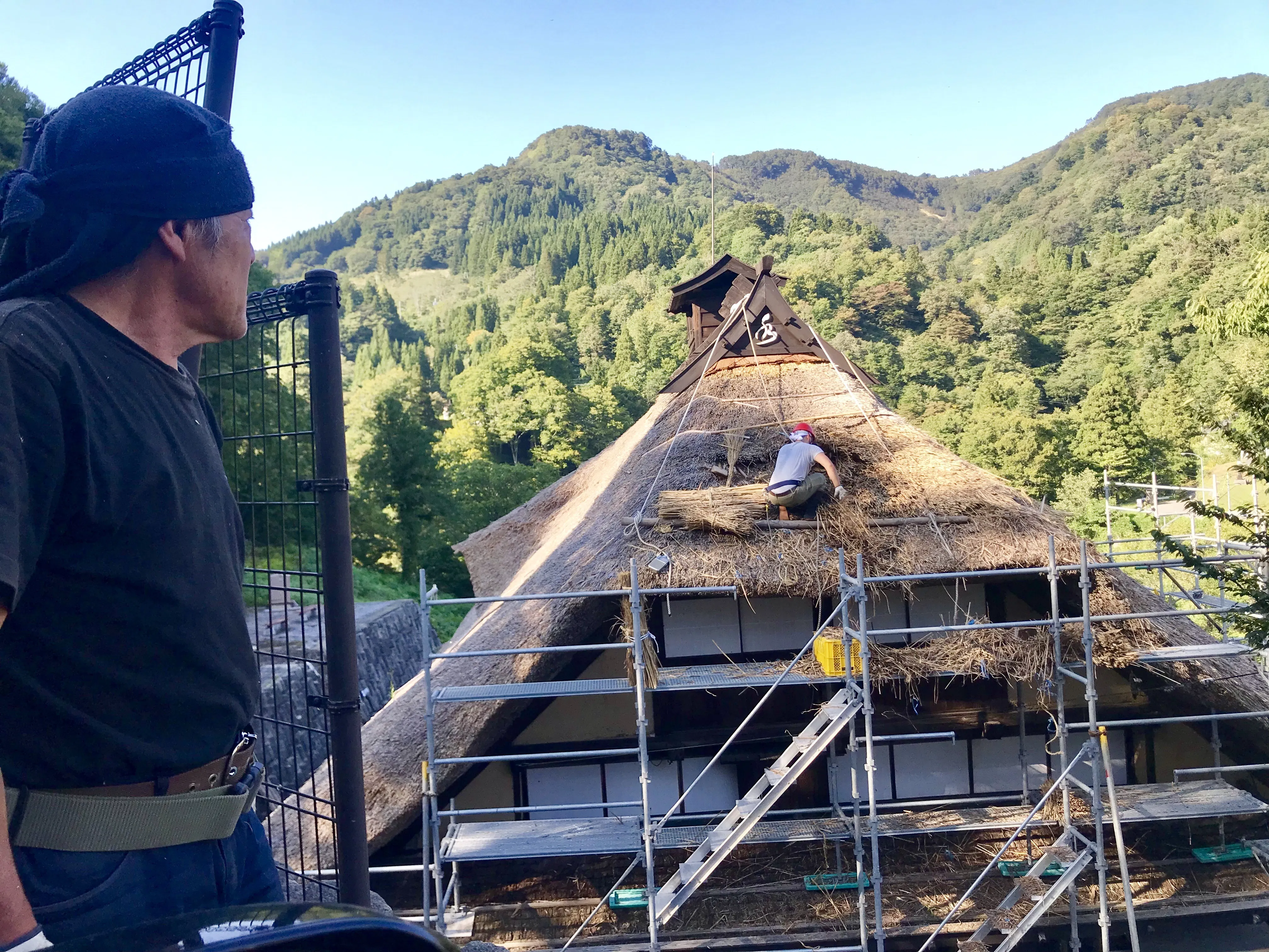 スポーツトレーナーとして働く傍ら、地元田麦俣で家業でもある「葺師」をしています。