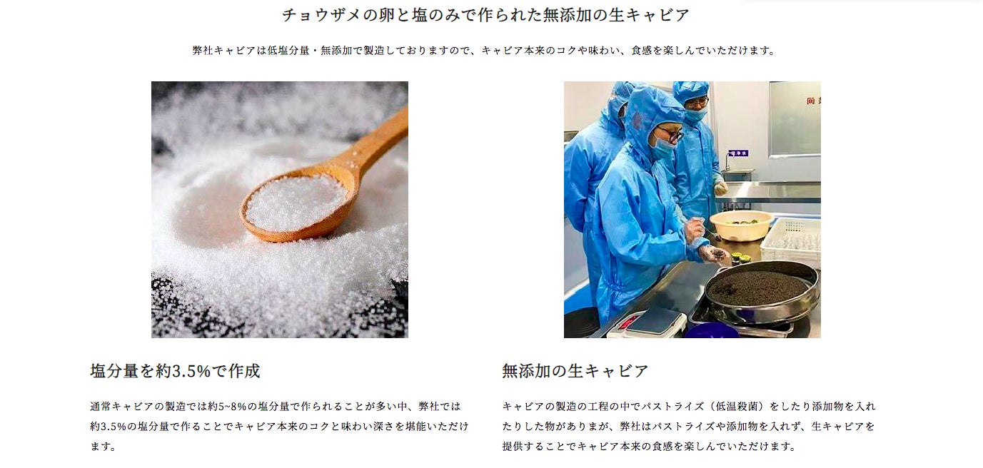私たちがよく知っている高級食材のキャビアは、長期保存するために60度で湯煎をし、低温殺菌してから5~8%という高い塩分濃度で塩漬けされた加工品です。