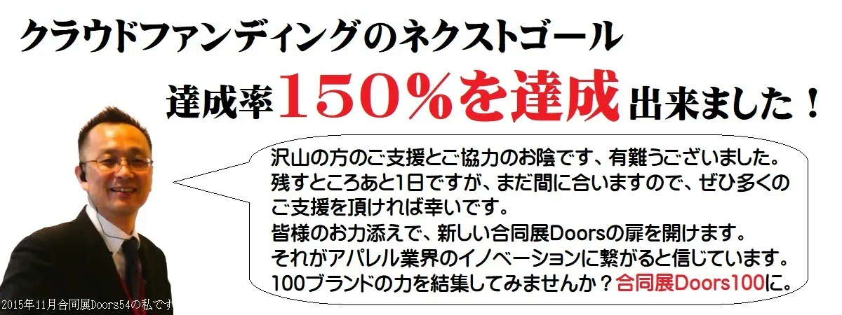 本当に皆様のお陰と有難く思うと共に、その期待値も高いのだと改めて確認出来ました。どうすればコロナで疲弊したミセス系アパレルの業界を活気づけられるのか。弊社だけでは難しいですが、皆さんの後押しがあれば動き出せるのだと思います。そのきっかけとして、アパレル主体の合同展示会、継続開催数日本一の合同展Doorsが率先して動きたいと思います。