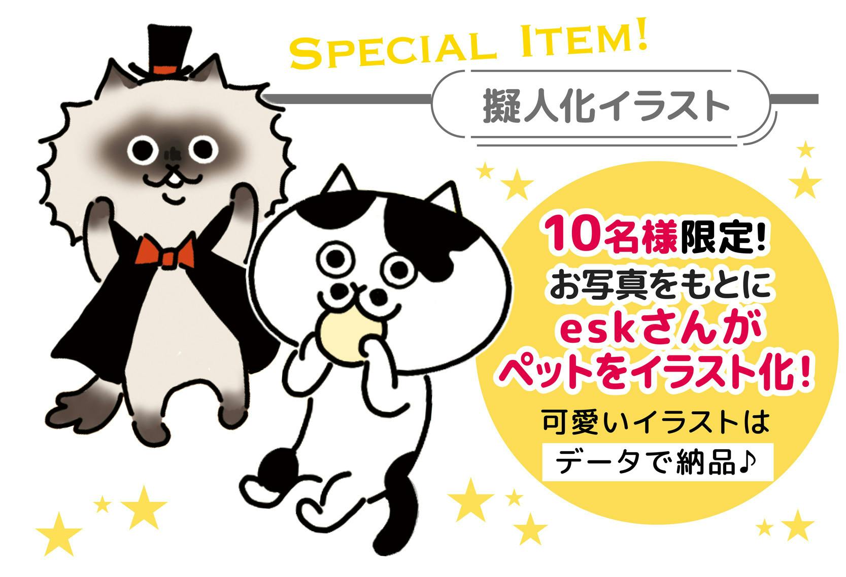 eskさんにご自身のペットの擬人化イラストをを描いてもらえるプランです。