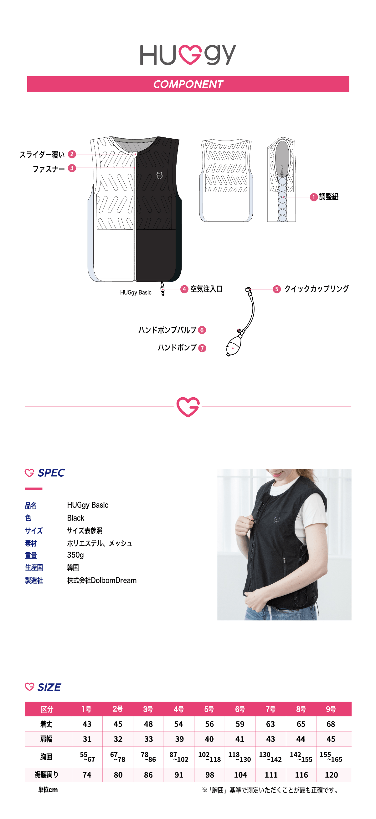 空気注入式軽量着圧ベストHUGgy(ハギー)のこだわり