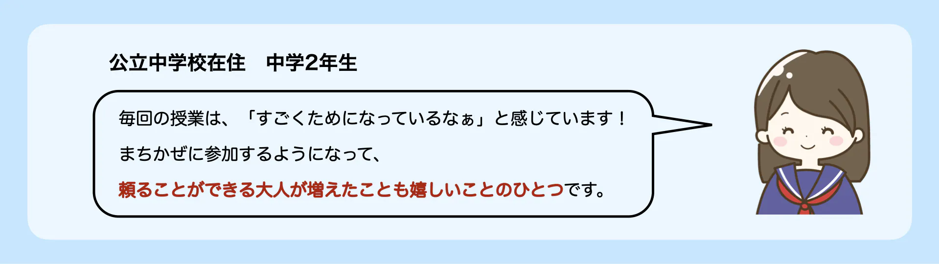 まちかぜ教室の授業に参加してくださっている中学生の方の声を紹介します。