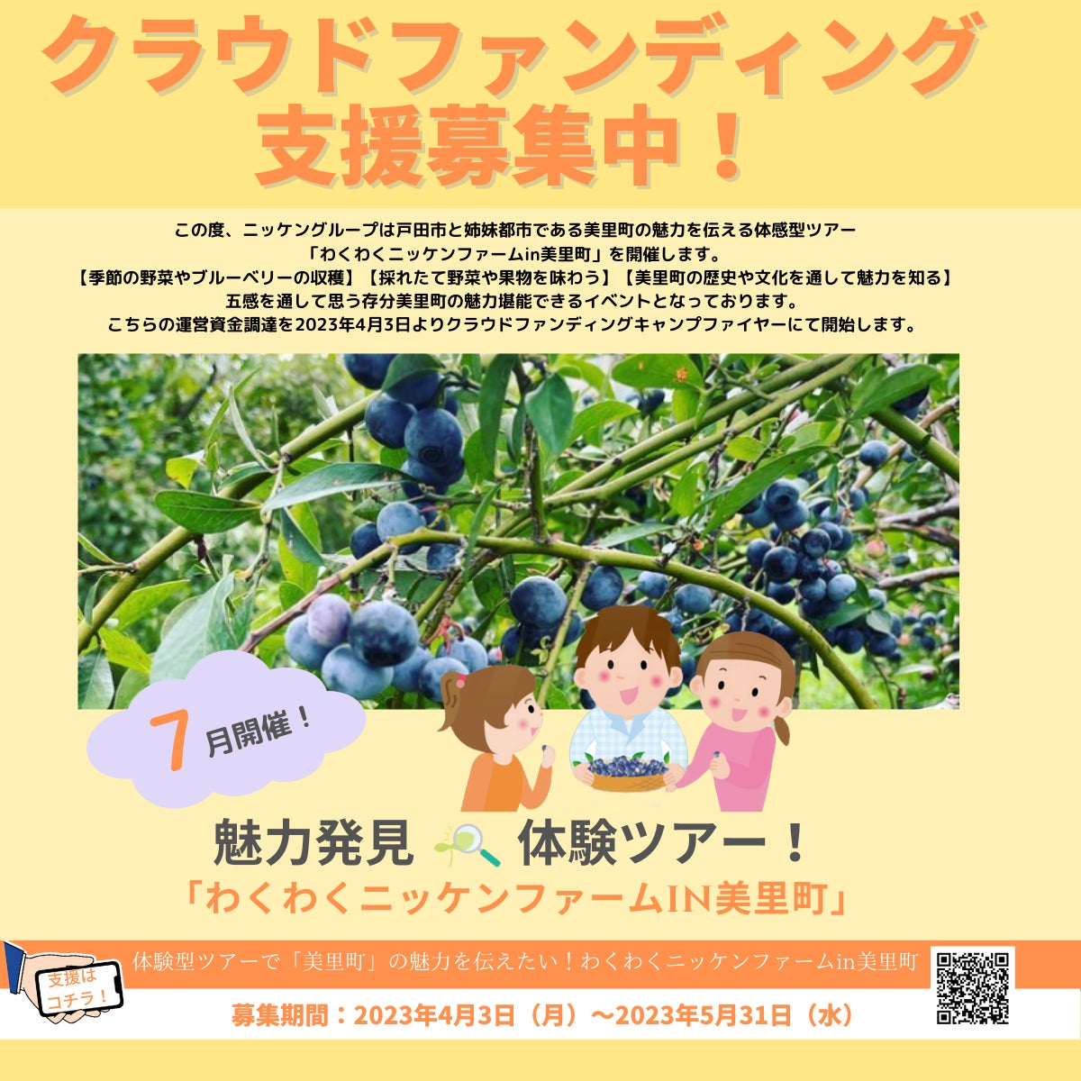 ニッケングループでは、現在グループ初となるクラウドファンディングプロジェクト「体験型ツアーで「美里町」の魅力を伝えたい!わくわくニッケンファームin美里町」を実施中!