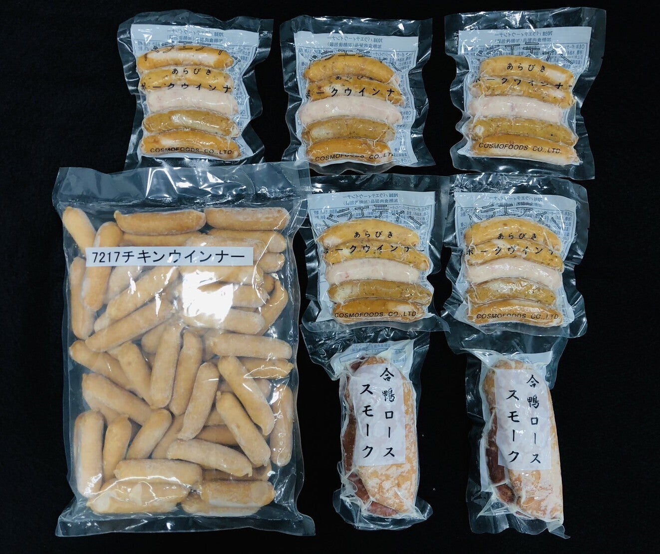 → チキンウインナー(1㎏)、合鴨ローススモーク(200g×2パック)、バラエティーウインナー(100g×5パック)
