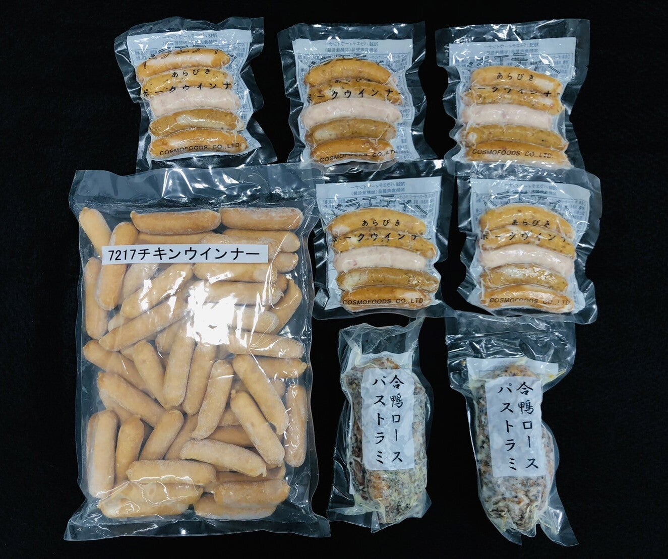 → チキンウインナー(1㎏)、合鴨ロースパストラミ(200g×2パック)、バラエティーウインナー(100g×5パック)