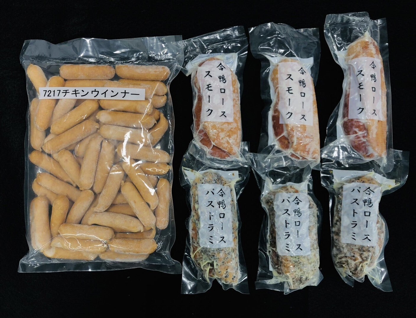 → チキンウインナー(1㎏)、合鴨ローススモーク(200g×3パック)、合鴨ロースパストラミ(200g×3パック)