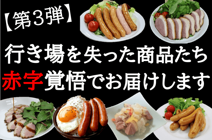 本来であれば、外食関係やホテル関係などで美味しくお召し上がりいただけるはずだったウインナーや合鴨が、この様な状況の中で大量に余ってしまっています。