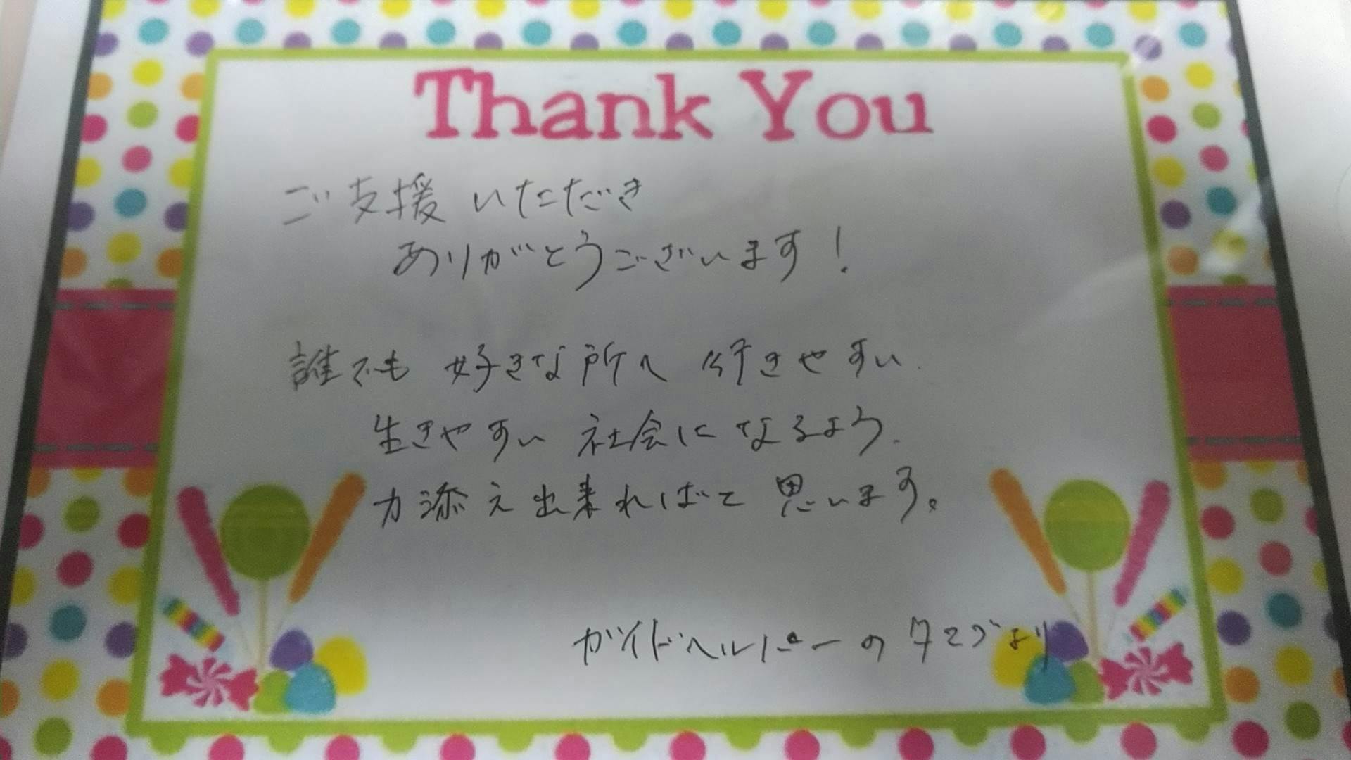 今夜もガイドヘルパーさんのサンクスレターをご紹介します