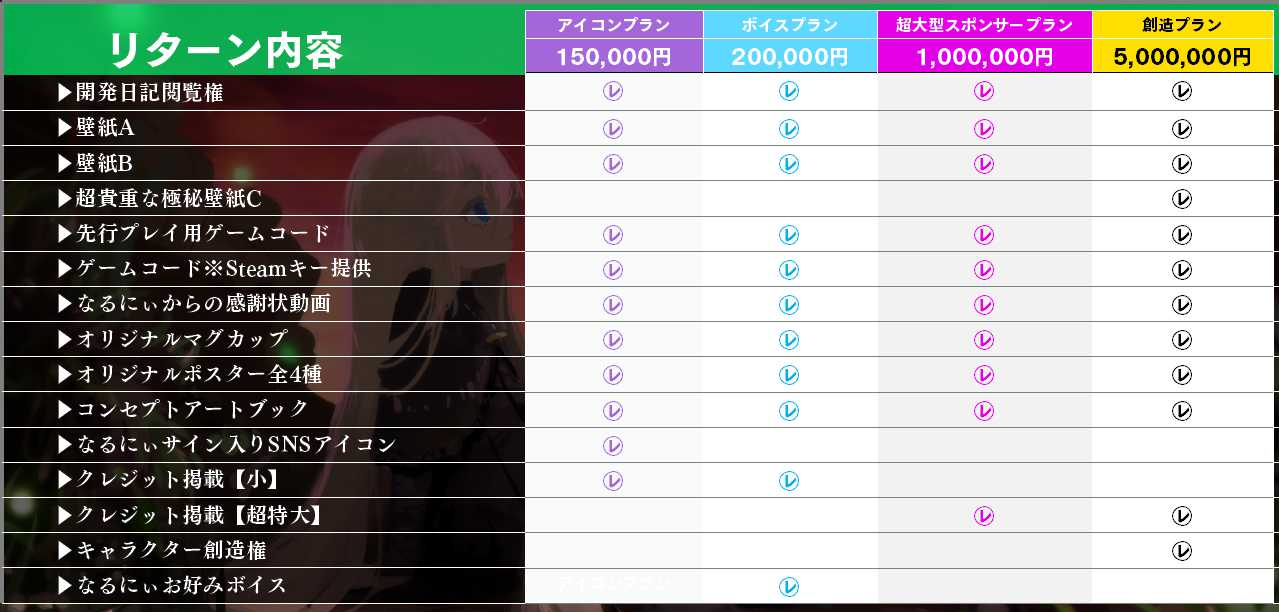 ※リターン品に含まれるゲームコードは全てSteamキーとなります