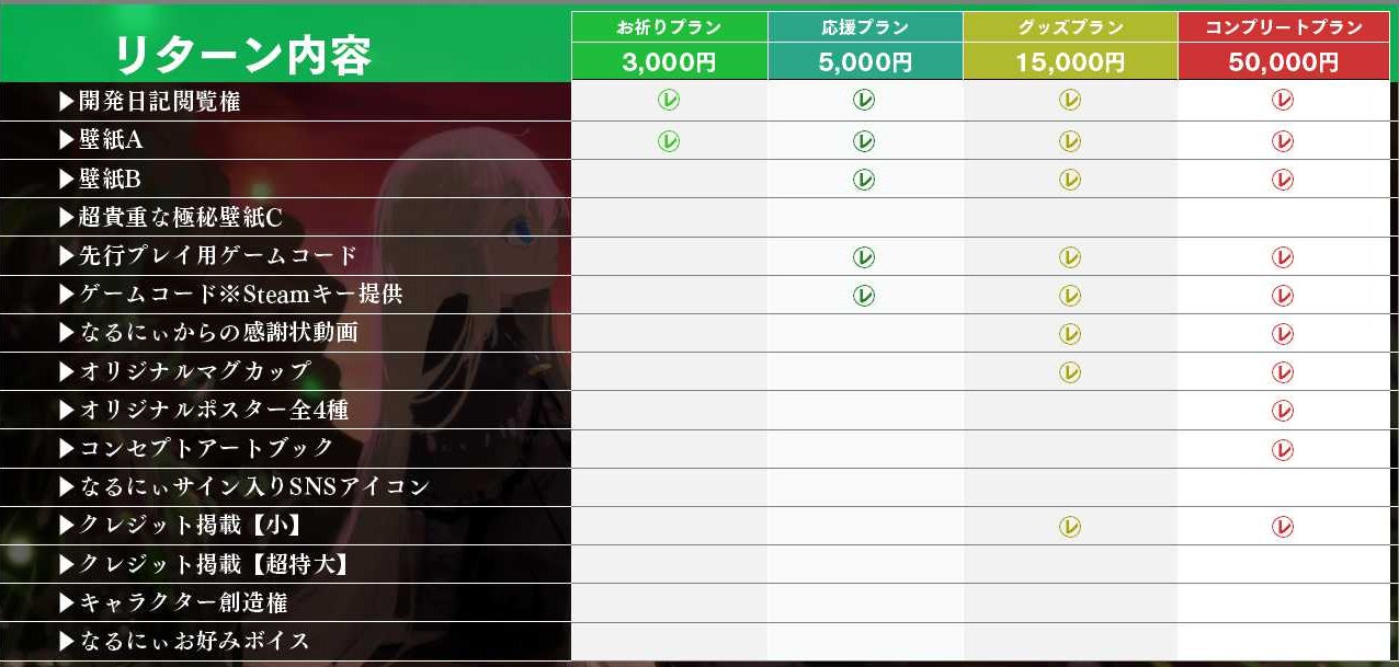 ※リターン品に含まれるゲームコードは全てSteamキーとなります