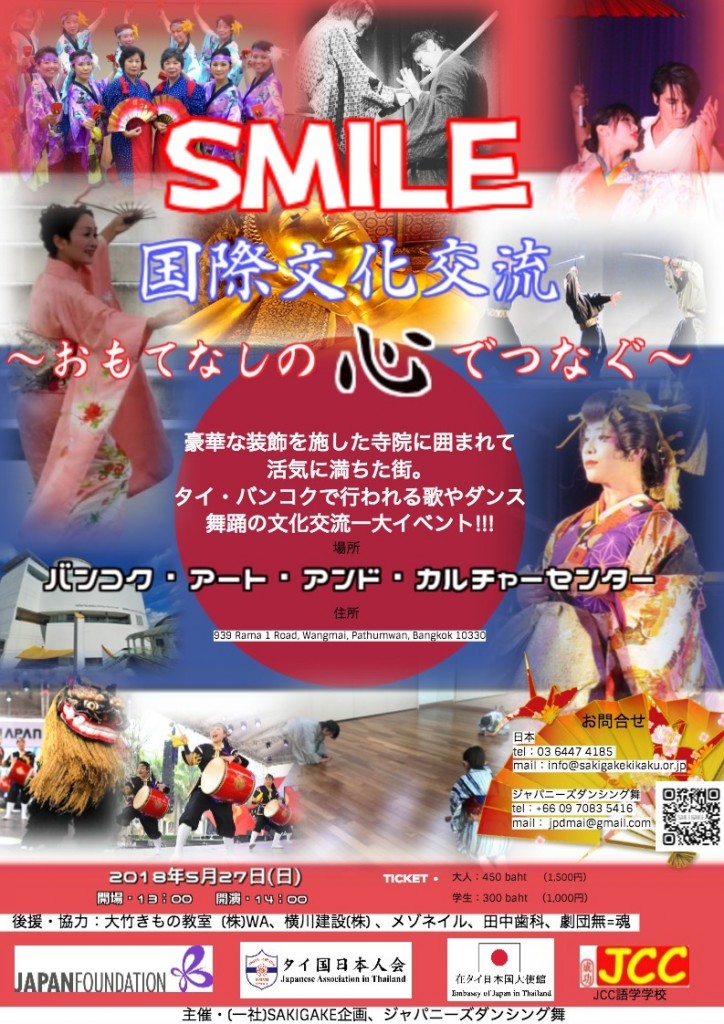 今回は沢山なご縁もあり、ジャパニーズダンシング舞、昇龍祭太鼓、タイ舞踊チーム、日本からはSAKIGAKEユニットが来タイし出演致します。