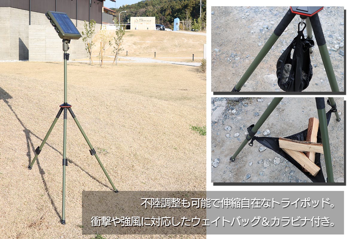 太陽光充電・ランタン・モバイルバッテリー・スタンドライトの4つの要素を兼ね備えたマルチツールライトです。
