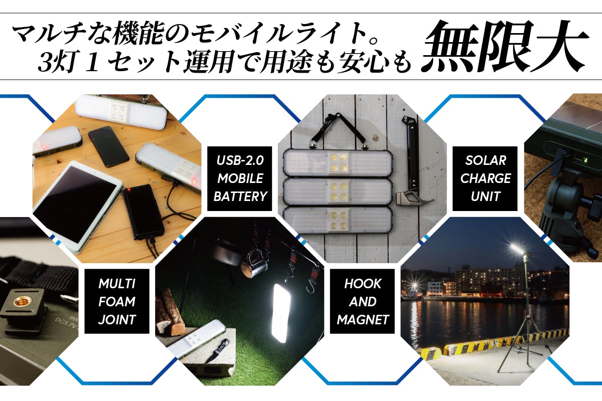 ●3灯がそれぞれ独立して便利なモバイルバッテリーとしても活躍