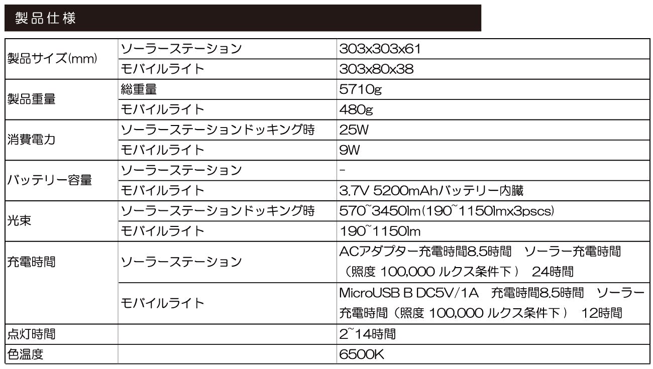 ●モバイルライトはソーラーステーションへドッキングさせることで、太陽光充電が可能になります。