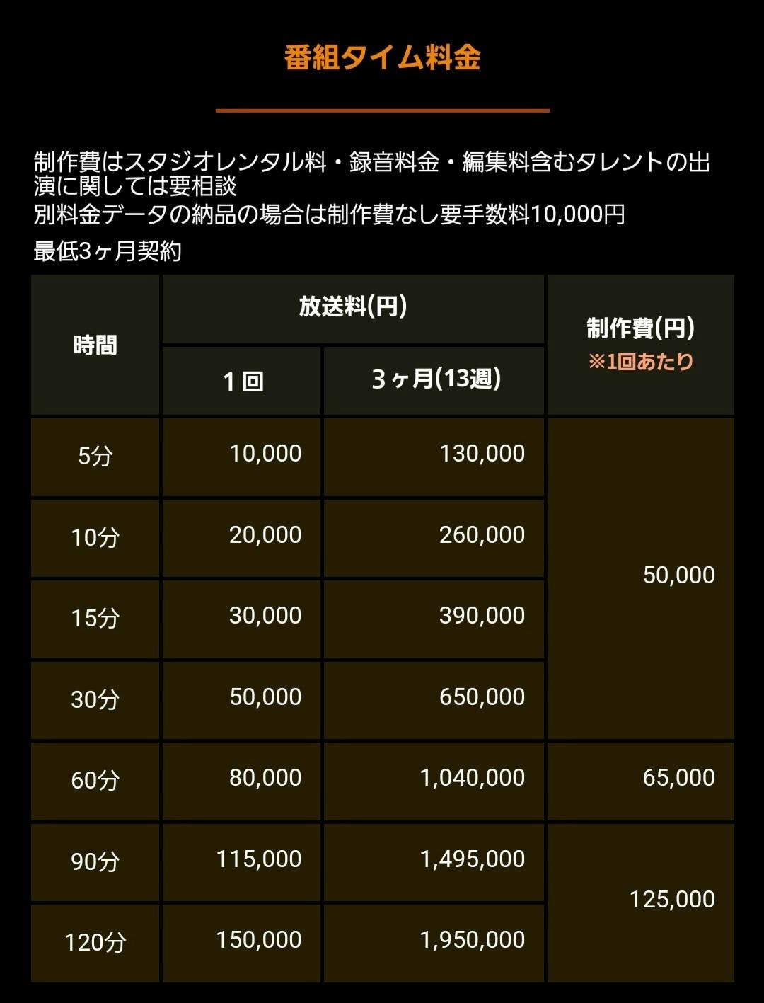 ・4月からのレギュラー放送60分放送3ヵ月分¥1,375,000(税込)