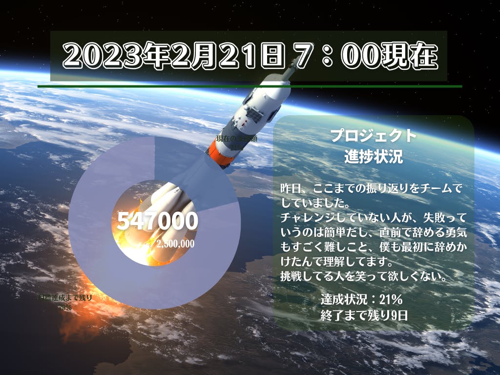 残り1週間、目標金額は100万円に設定しようと思います。