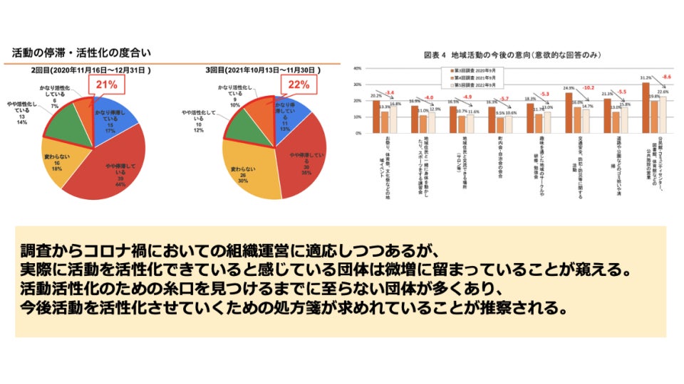 CRファクトリーが2020年と2021年に行った「新型コロナウィルスの影響によるコミュニティ・NPO組織の運営方法の変化についてのアンケート」や第一生命経済研究所「新型コロナウイルスによる生活と意識の変化に関する調査」においても明らかになってきているところです。