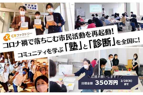 CRファクトリーはビジョン実現に向かっての歩みを弱めるつもりはありません。15年以上に渡ってずっとそこに向き合い取り組んできました。何があろうとも、その信念は貫きます。今回のクラウドファンディングを通じて、CRファクトリーファミリーや共感してくださるみなさまのお力添えをいただいて、「市民活動・コミュニティ活動の再起動」という役割をしっかりと果たしていきたい。ポストコロナの社会に必要なのは「コミュニティ」と「つながり」です。「コミュニティ」と「つながり」が豊かな社会をつくっていくことが重要であり、そのためのビジョン・構想・シナリオが私たちにはあります。コロナ禍で落ち込んだ市民活動・コミュニティ活動が再起動し、「コミュニティ」と「つながり」が活気を取り戻すための支援や環境づくりが重要です。