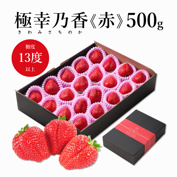 園村苺園の完熟さちのか苺の中で、糖度が基準値以上の苺を「極幸乃香(きわみさちのか)」と命名しました。