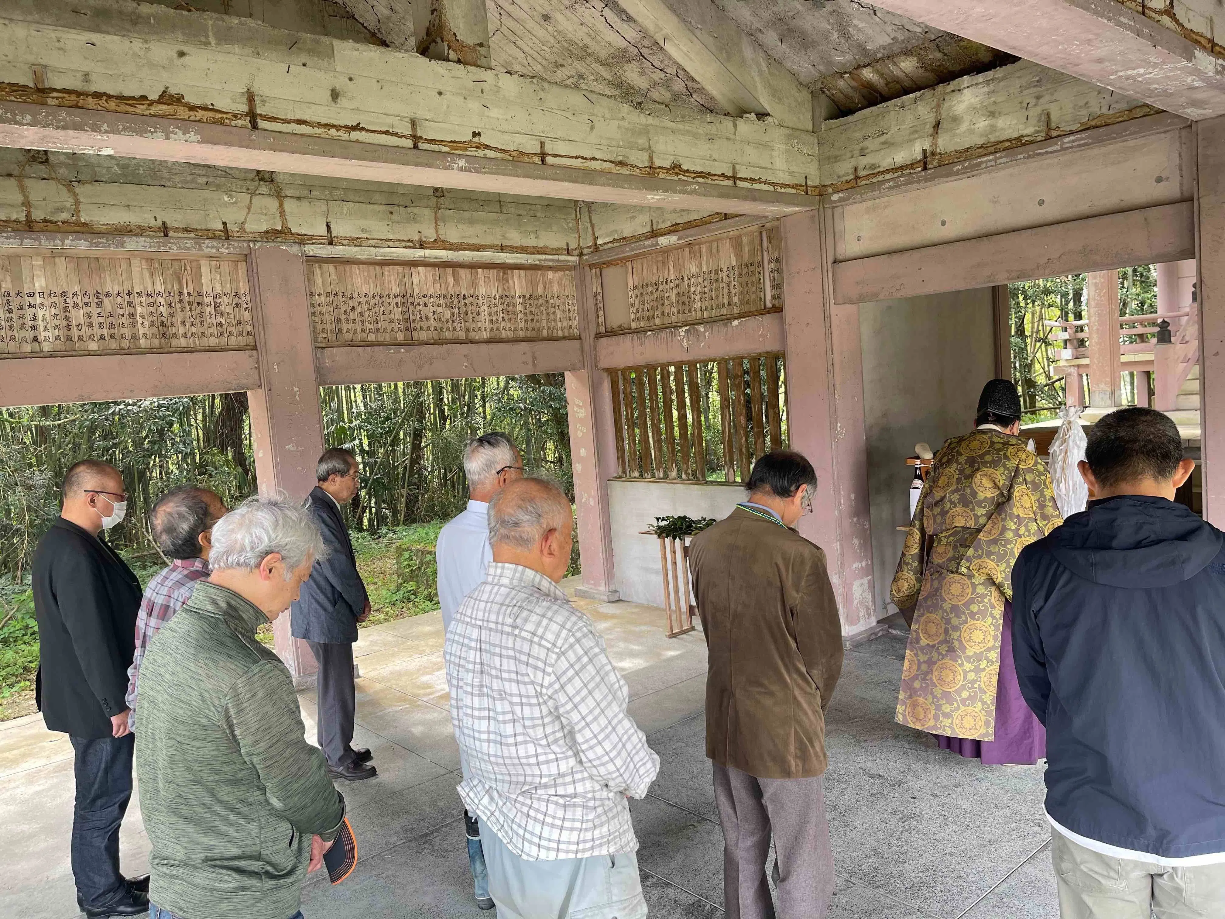 改修前ということであまり周知をすることはせず、当日参加できるさつま町文化財ボランティアの方々と楠木会メンバーにて、上牧瀬宮司により執り行わました。
