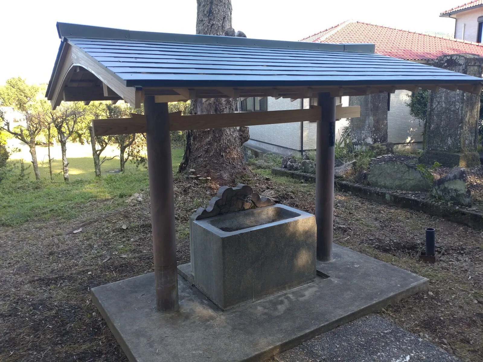 宮之城高等技術専門校の学生さんに制作してもらった手水舎の木工部分に、屋根が敷かれて完成しました。モスグリーンの屋根は社殿の銅板の屋根と色合いが調和してとても良いです。また、南日本新聞社やさつま町役場の広報課から本日取材を受けられていたので、いつか記事になるの楽しみです。