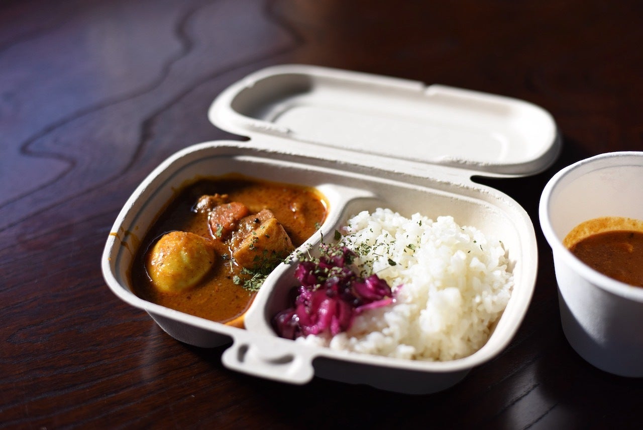 私たちのカレーも、その特徴を引き継いだ上で、地元の食材を取り入れています。レギュラーメニューの「麓山高原豚のトロトロカレー」は、玉ねぎや大根、ニンジンなどの野菜や果物と、表面を焼き上げた厚めのバラ肉を煮込んだスープを使います。クミンやマスタードは「種」の状態でテンパリング(香りを油に移すこと)し、パウダースパイスは長時間煮込まないのでスパイシーな香りが失われません。小麦粉を使わないのでスッキリと食べていただけます。