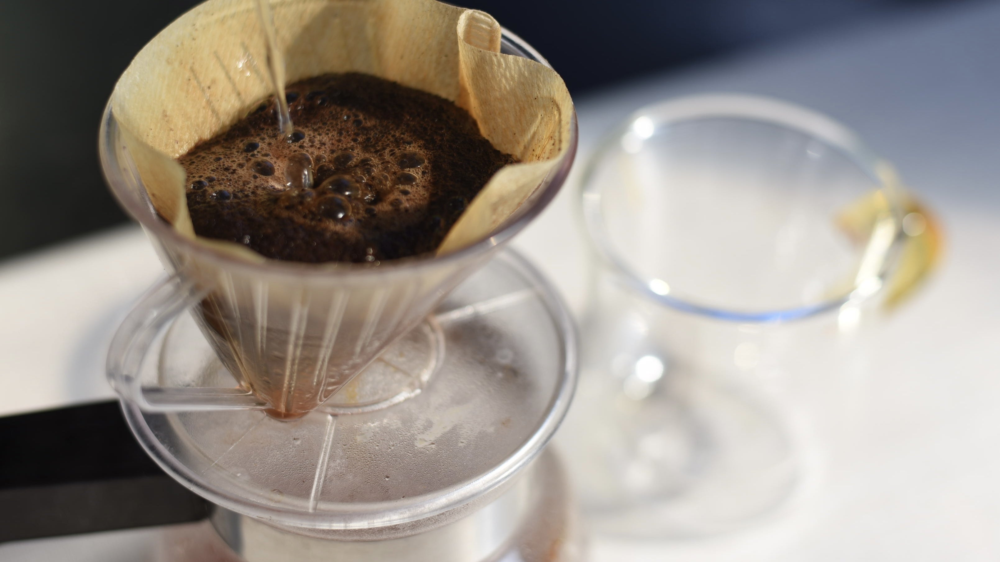 焙煎直後の豆を挽き、ハンドドリップでコーヒーを淹れてください