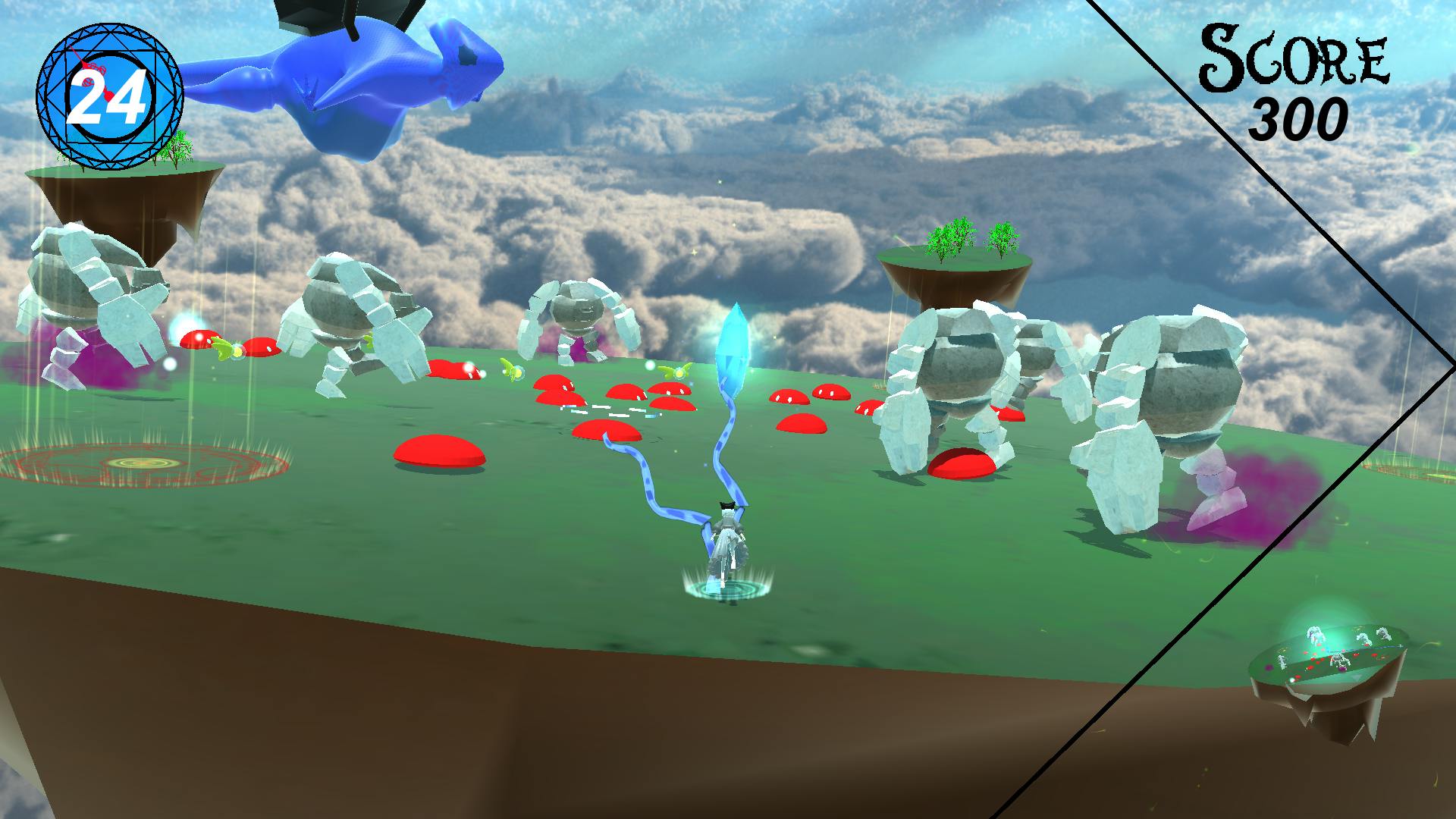 主人公と画面中央にあるクリスタルを結ぶマジックラインで敵を一網打尽にするゲーム