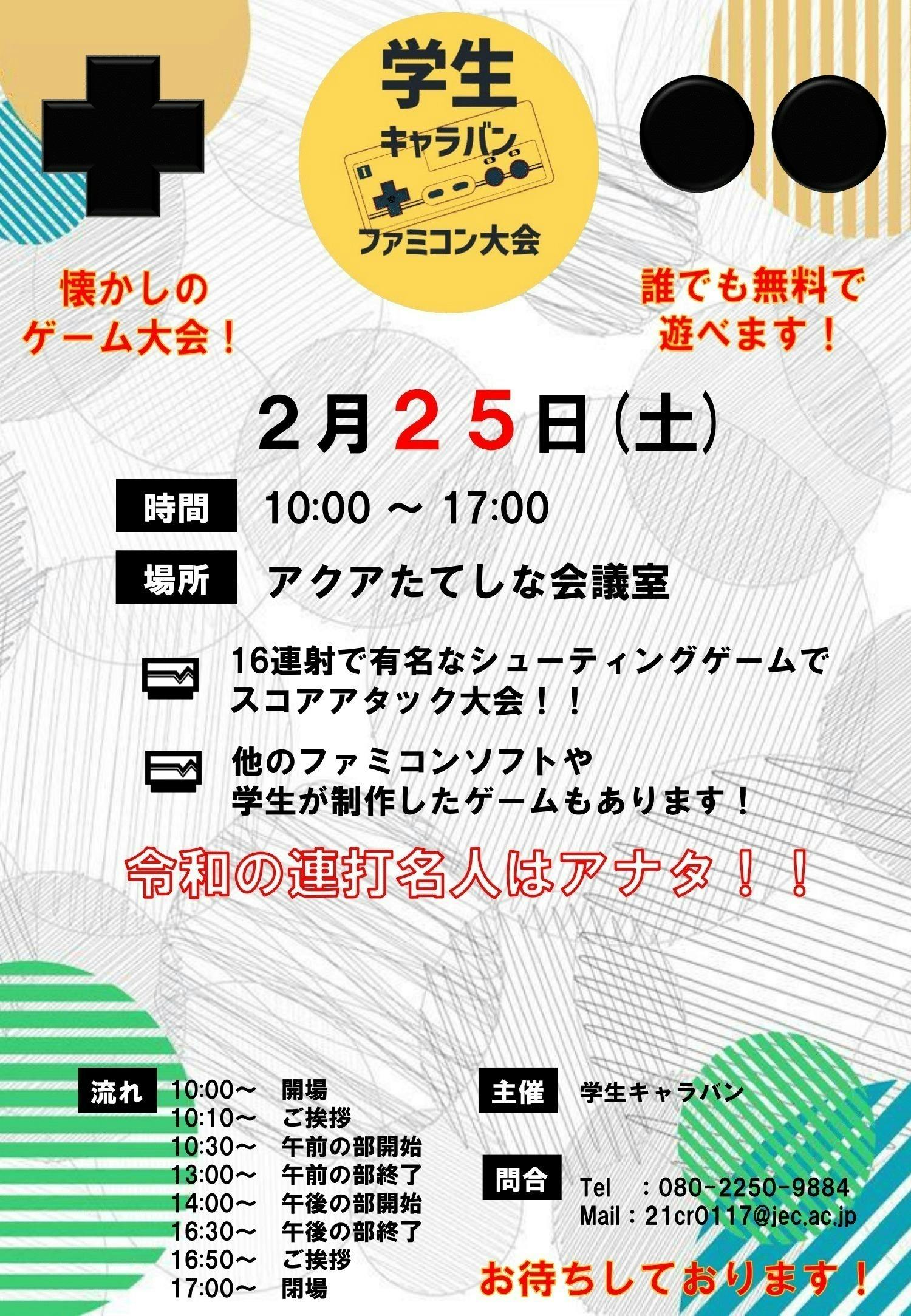 内容 :ファミコン大会、ファミコン・学生が制作したゲームが遊べるゲームセンター