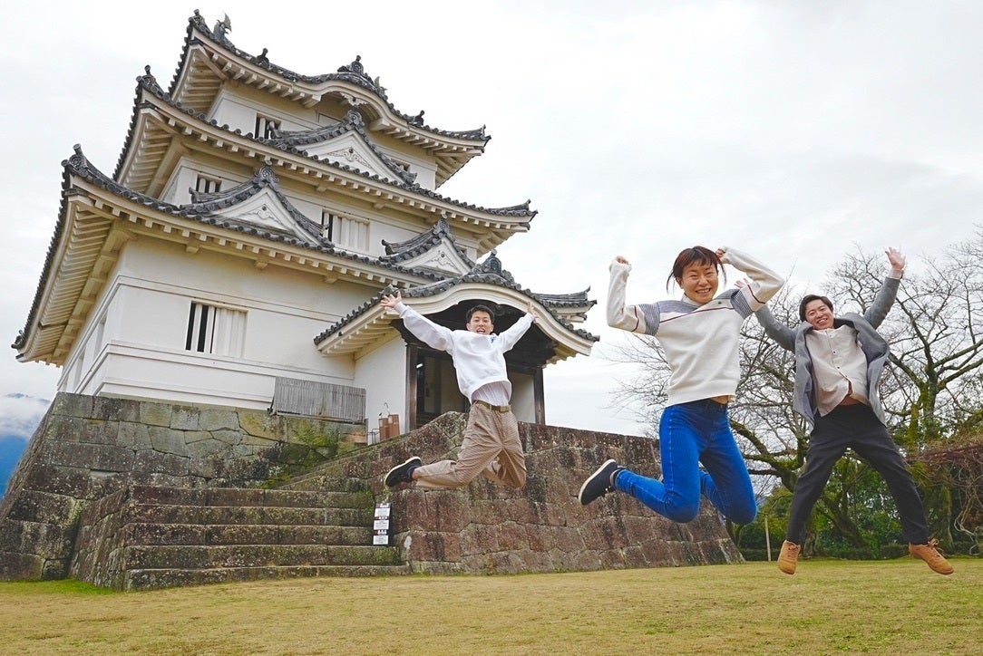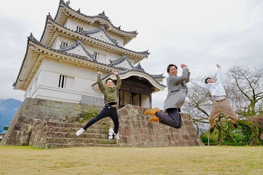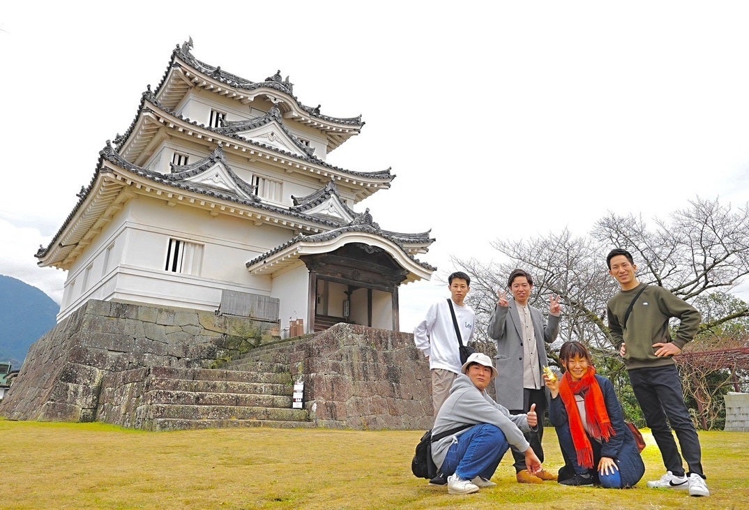 1月にメンバーで現地に視察にいきました!背景は宇和島城!