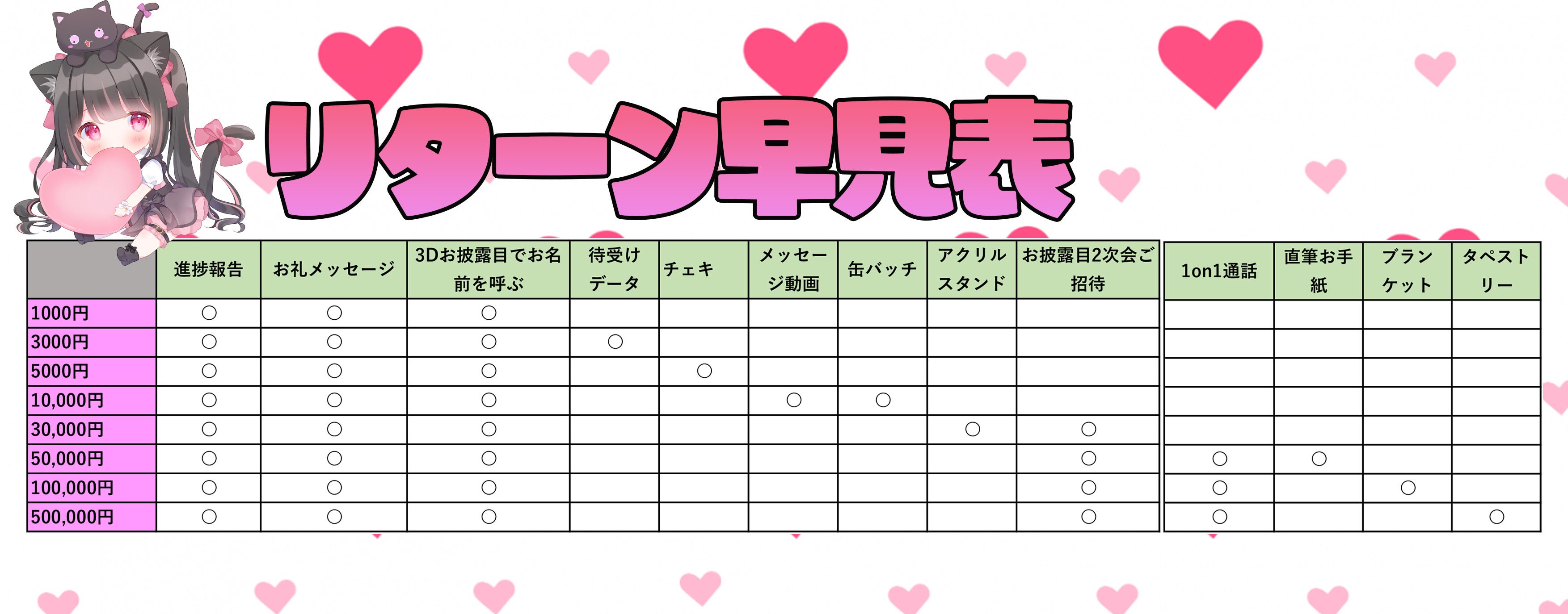 ※目標金額未達成時、40万達成で新しい2Dになります。それ以下の場合は上記の記載から上から順番に使用させて頂きます。