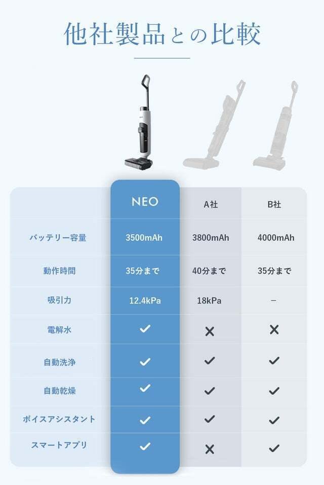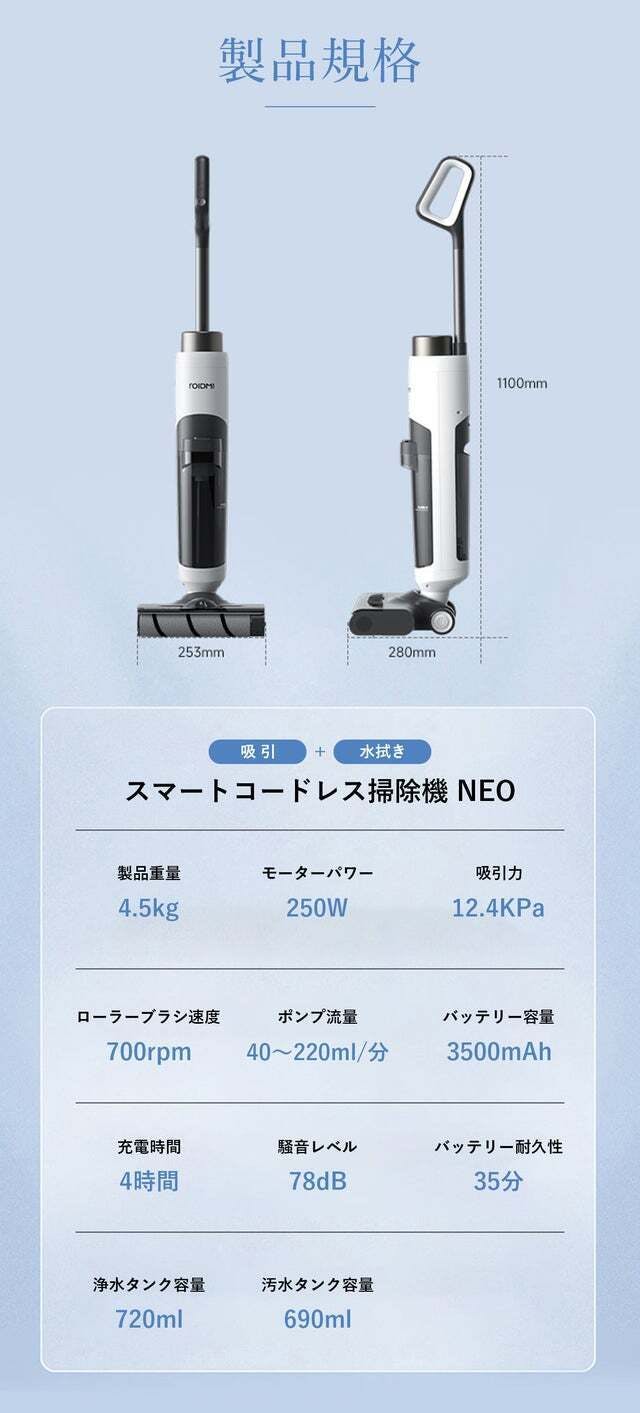 「ROIDMI NEO」は1回の充電で約150㎡(45坪分)の使用が可能。