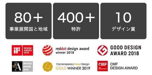 設立以来、すでに世界中で400以上の特許を所有しており、iF賞、Reddot Design賞、GoodDesign賞を含む10項目の国際デザイン賞を受賞しています。